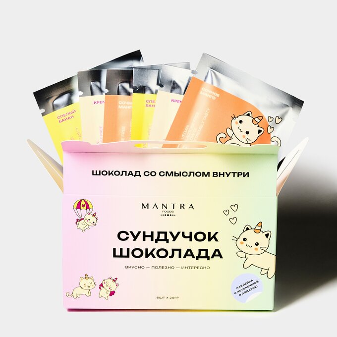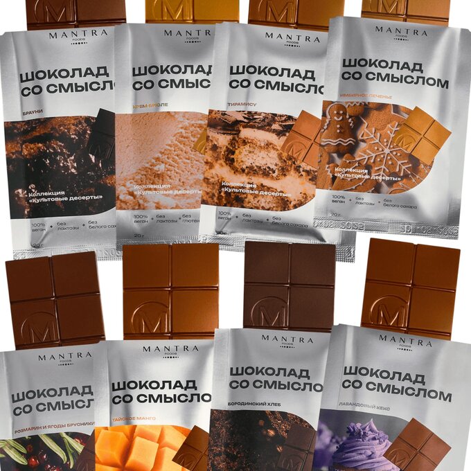 Натуральность в каждой детали! Миндаль, кокосовый сахар-сырец, сублимированные манго и клубника, фисташки, кешью, клюква — только лучшие ингредиенты, которые природа может предложить. Нерафинированное масло какао и какао-бобы Криолло дарят насыщенный шоколадный вкус, который тает во рту. Натуральные экстракты апельсина, лимона, мяты и Бурбонской ванили добавляют свежести и изысканности.