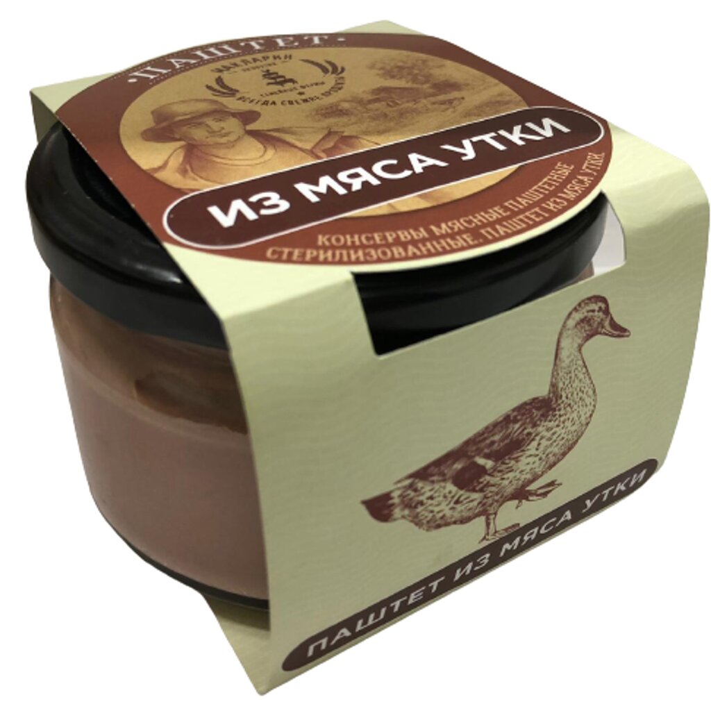 Состав: мясо утки, щековина свиная, печень свиная, шпик свиной, нитритно-посолочная смесь (соль пищевая, фиксатор окраски (нитрит натрия)), сахар, комплексная пищевая добавка (картофельный крахмал, сахара (декстроза, сироп глюкозный), эмульгатор (эфиры глицерина и лимонной и жирных кислот), специи, усилитель вкуса и аромата (глутамат натрия), антиокислитель (изоаскорбиновая кислота), натуральные ароматизаторы), лук жареный.